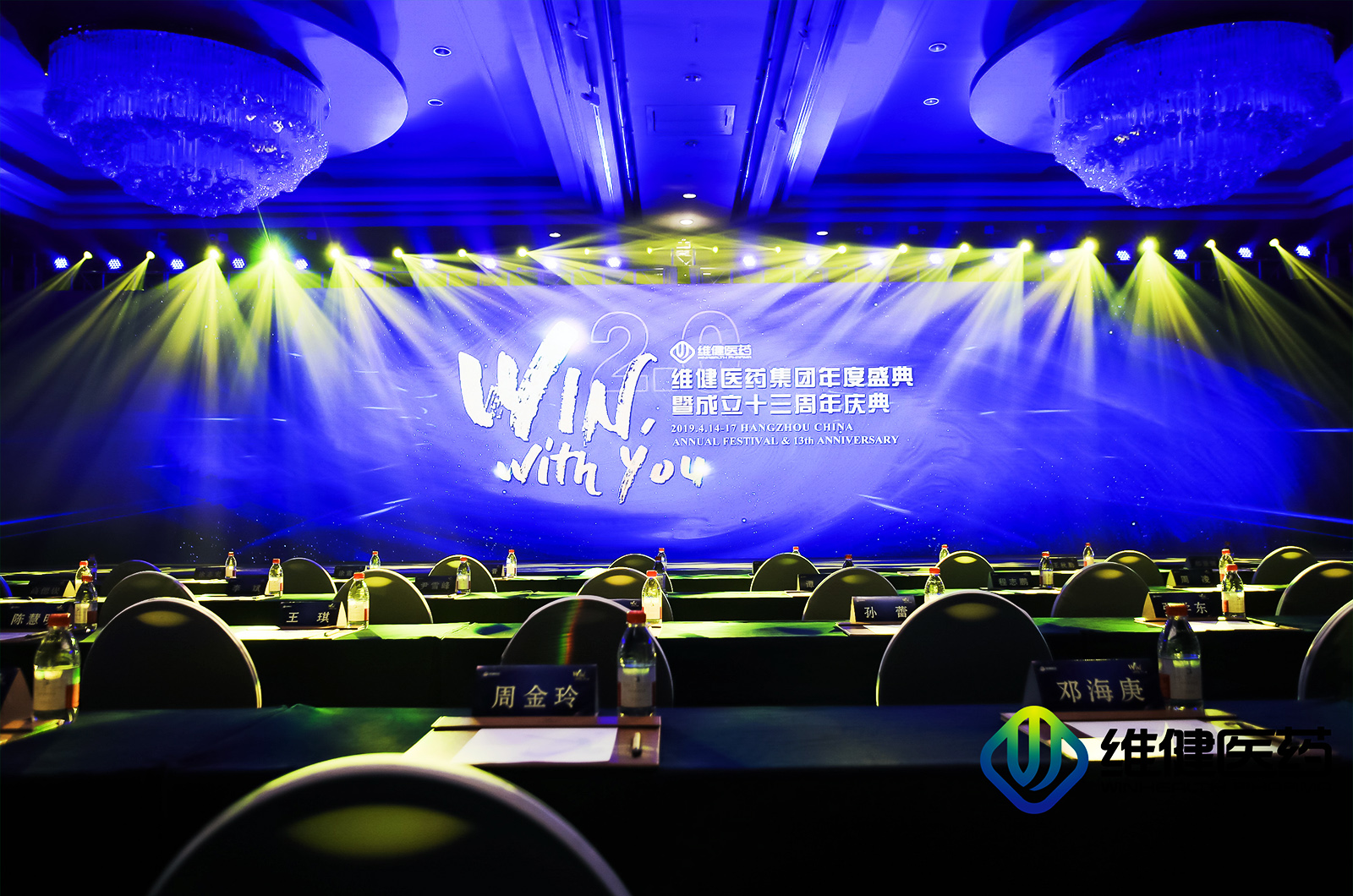 ▲年會簽到處——手冊、年會盛典日程易拉寶等
