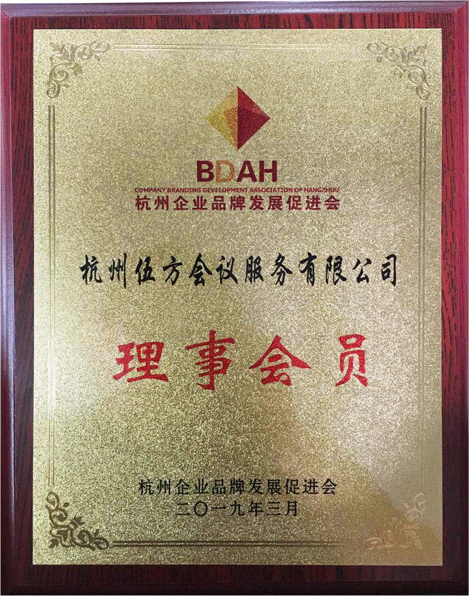 杭州伍方會議服務有限公司為杭州企業(yè)品牌發(fā)展促進會理事會員。