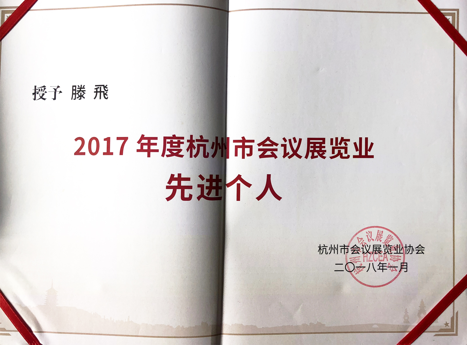 “2017年度杭州市會議展覽業先進個人”